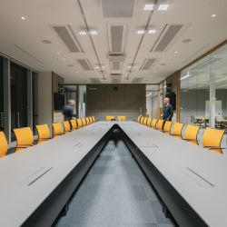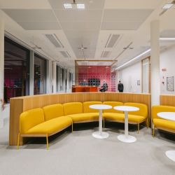 Bei der Planung der Beleuchtung mussten auch die großzügigen Verglasungen berücksichtigt werden - große, raumhohe Fenster eröffnen den Blick auf einen neu angelegten, begrünten Innenhof, wodurch viel Tageslicht hereinfällt. Ein Gleichgewicht wurde durch Tageslichtsensoren erreicht, die das natürliche Licht kontinuierlich überwachen und die künstliche Beleuchtung automatisch dimmen, um eine gleichbleibende Beleuchtungsstärke zu gewährleisten und den Energieverbrauch zu senken. Das Steuerungsprotokoll DALI-2 ermöglicht eine programmierbare Szenensteuerung und einen Dimmbereich von 1 bis 100 %.