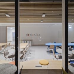 Das System wurde entwickelt, um den sich wandelnden Arbeitsplatzmodellen und vielfältigen Arbeitsformen gerecht zu werden. Es unterstützt flexible Raumaufteilungen, Bereiche für die Zusammenarbeit, individuelle Arbeitsplätze sowie hybride Arbeitsumgebungen. Als Projekt der Kategorie A wurde das Innenraumkonzept bewusst neutral gestaltet. „Das Beleuchtungskonzept spiegelt diesen Ansatz wider, indem es eher als unterstützende Ebene denn als prägendes ästhetisches Element fungiert", erklärt Claudia Lacopo. Die Stromschiene ermöglicht jedoch auch die Integration zusätzlicher Leuchten - etwa dekorativer Ausführungen -, sofern dies aufgrund der besonderen Gestaltung des Raums erforderlich ist.