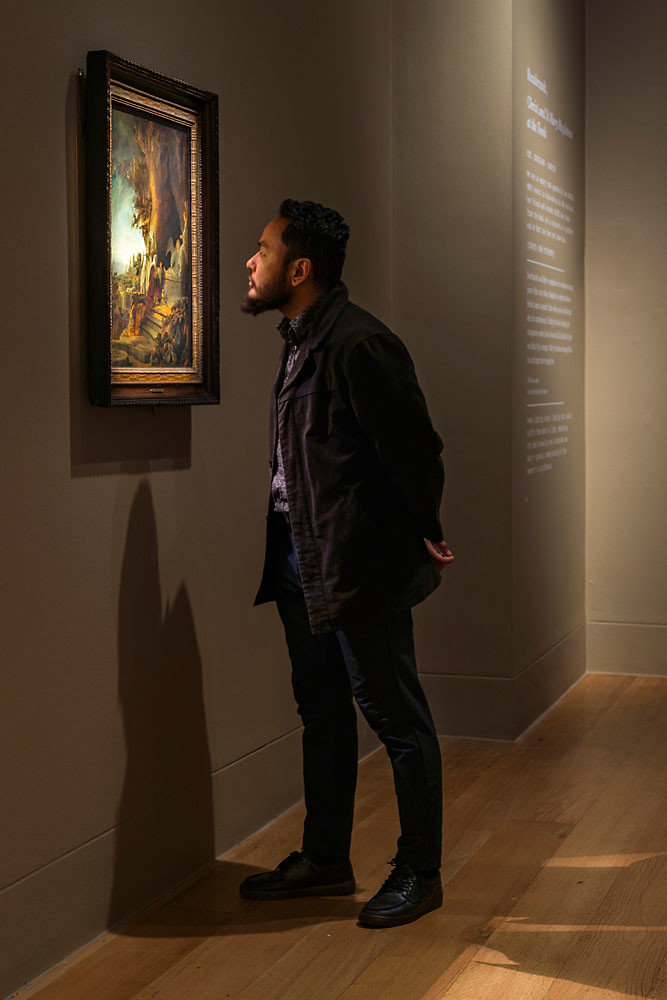 „Der erste Raum etwa ist kühn und dramatisch - und zeigt Rembrandts einzigartige Fähigkeit als Geschichtenerzähler -, während der letzte Raum üppige Sinnlichkeit vermittelt und eine intime Atmosphäre für die persönlichsten Werke des Künstlers schafft. Mit dem neuen LED-Beleuchtungssystem ist es uns gelungen, einige der Schlüsselbotschaften der Ausstellung durch unsere eigene Arbeit mit Licht zu vermitteln.“
